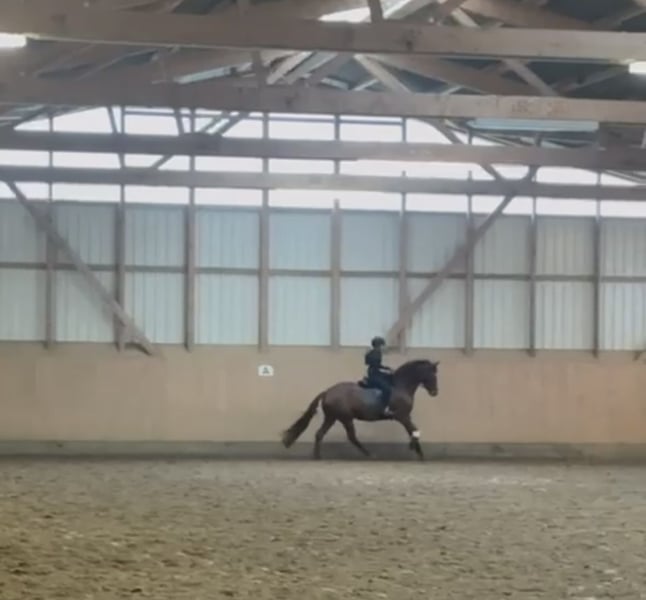 For sale: a young Vaderland/Vitalis Westphalian mare Sold at the Westphalian auction at 2 years old. Light-footed, dressage horse at L level, suitable for ladies, children’s tours, juniors, and young riders. Very uphill movement with a high degree of collection. Well-behaved and brave, familiar with terrain, arena, and off-site training. Has not yet been presented publicly. Excellent health, no prior medical issues. Occasionally nods after eating.