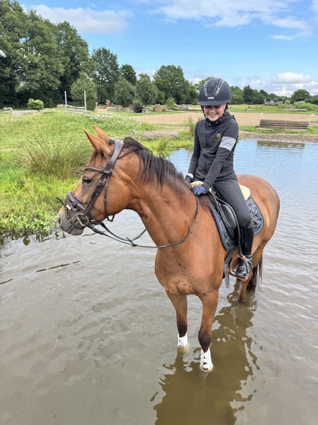 Na sprzedaż młoda klacz Vaderland/Vitalis z Westfalii Sprzedana w wieku 2 lat na aukcji Westfalii. Obecnie na poziomie treningu ujeżdżeniowego L, odpowiednia dla pań, dzieci, Tour Juniorów oraz młodych jeźdźców. Bardzo ładnie się prezentuje w ruchu, ma dużą skłonność do zbierania się. Posłuszna i odważna, zna teren, plac treningowy oraz treningi na zewnątrz. Nie była jeszcze publicznie prezentowana. Zdrowa w 100%, bez wcześniejszych schorzeń. Czasami unosi głowę po jedzeniu.