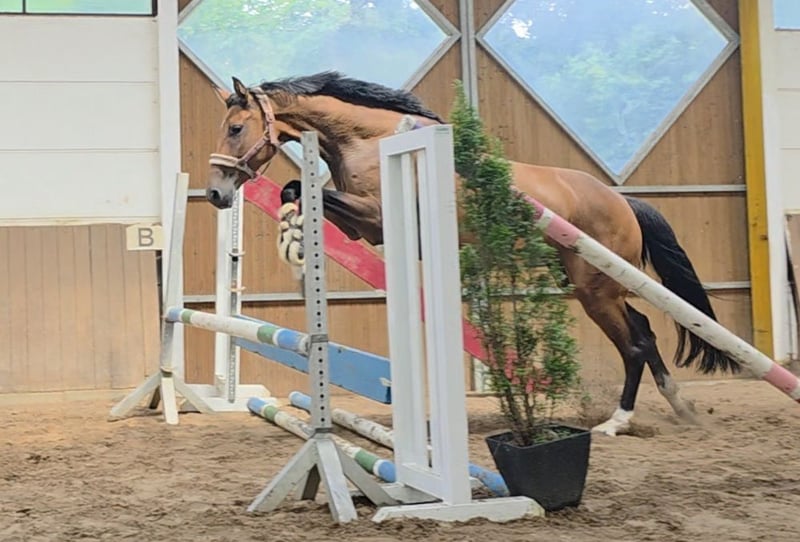Diese hübsche, 7-jährige Stute mit ansprechendem Exterieur sucht ein liebevolles, erfahrenes Zuhause. Sie hat in der Vergangenheit leider auch schon nicht so schöne Erfahrungen gemacht und benötigt daher Menschen, die ihr mit Ruhe, Geduld und viel Herz begegnen. Amanda wurde bei uns schonend angeritten und zeigt sich unter dem Reiter brav und kooperativ. Ins Gelände geht sie artig und lässt sich dabei problemlos gebisslos reiten. Mit Gebiss hat sie derzeit noch deutliche Schwierigkeiten, sodass hier ein einfühlsamer, erfahrener Reiter gefragt ist, der ihr Zeit und Vertrauen schenkt. Oder man lässt sie damit einfach in Ruhe. Charakterlich ist sie eine sehr süße, verschmuste Maus, die die Nähe zum Menschen sucht. Im Umgang zeigt sie sich grundsätzlich unkompliziert und verträglich mit anderen Pferden. Aktuell steht sie in der Box mit täglichem Paddockgang, würde sich aber auch im Offenstall wohlfühlen. Auch als Zuchtstute könnte sie durch ihre Abstammung interessant sein. Wir suchen für sie Menschen, die Freude daran haben, einem Pferd mit Vergangenheit eine faire Chance zu geben und die Geduld mitbringen, gemeinsam Schritt für Schritt Vertrauen aufzubauen. Zu erwähnen ist, dass Amanda einen leichten Beckenschiefstand hat. Mit entsprechendem Training und Muskelaufbau wird sich das bessern. Aus oben genannten Gründen ist dieses tolle Pferd weit unter Wert in beste Hände abzugeben. „Noch mehr Fotos, Videos und kleine Einblicke in den Alltag unserer Pferde gibt’s auf Instagram: [maresi_lange]. Schauen Sie gern vorbei und lernen Sie unsere Vierbeiner schon vorab ein bisschen kennen. You can find more photos, videos and little insights into the everyday life of our horses on Instagram: [maresi_lange]. Feel free to take a look and get to know our horses a bit better in advance.“ Die Beschreibung des Pferdes beruht auf subjektiven Eindrücken und Erfahrungen unsererseits und ist keine Beschaffenheitsvereinbarung und Zusicherung von Eigenschaften. Probereiten erfolgt auf eigene Gefahr. Für das Vorstellen/ Probereiten des Pferdes erlauben wir uns eine Aufwandsentschädigung in Höhe von 30 Euro zu berechnen. Diese wird natürlich bei Kauf des Pferdes verrechnet.