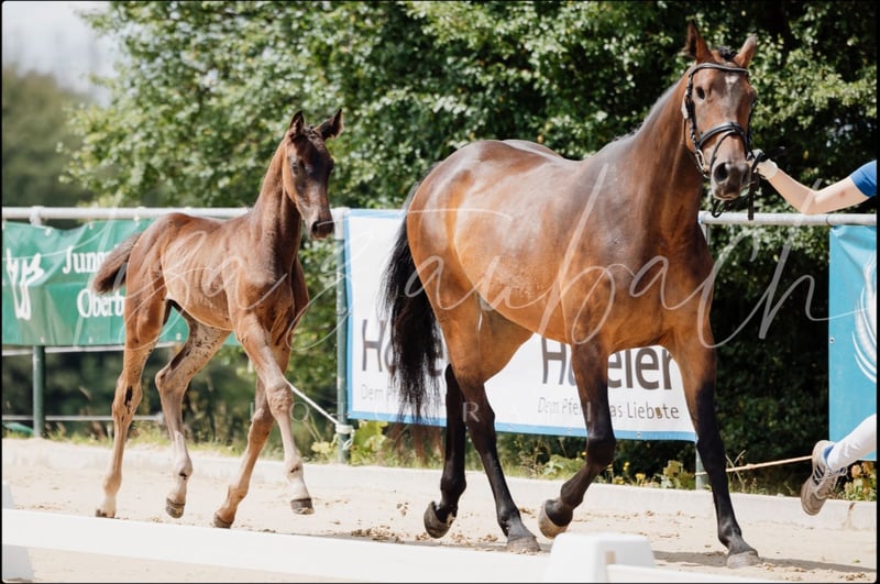 Cleo is a sweet and friendly mare. She will be seven years old in 2026 and stands approximately 1.64 meters tall. At the age of four, she foaled a very athletic foal sired by Classico's Champion. She was bred with only two inseminations. The pregnancy and foaling were smooth and uncomplicated. Sire: Contendrix (placed up to 1.60 m under Toni Hassmann) Grandsire: Cordynox (placed internationally under Marcus Ehning) Her maternal half-brother has already competed successfully in show jumping up to L**level and L**-class. At five years old, Cleo was gently backed and started under saddle. She rides confidently alone and in a group, both in the field and over small jumps. She is well-behaved for the farrier and during grooming. She loads reliably and is accustomed to both box and open stall housing. Due to an accident in the pasture at age two, Cleo lost her right eye. I am therefore offering her at a below-market price. She copes very well with this condition. Cleo is located in 51647 Gummersbach and can be visited and tested under saddle there. To avoid riding tourism and for fairness to the horse, I charge a fee of €10 for a trial ride. If interested or for questions, please contact me via ehorses or WhatsApp at 0171 800 89 79. Cleo requires a dedicated owner and will not be sold to riding schools or dealers. Priority goes to the right person!