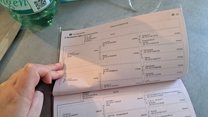 Cleo is a sweet and friendly mare. She will be seven years old in 2026 and stands approximately 1.64 meters tall. At the age of four, she had a very talented foal by Classico's Champion. She was bred successfully after only two inseminations. The pregnancy and foaling were uncomplicated. Sire: Contendrix (placed up to 1.60 m under Toni Hassmann) Dam's sire: Cordynox (placed internationally under Marcus Ehning) Her maternal half-brother is already competing successfully in show jumping up to L and L-Springen levels. At five years old, Cleo was gently backed and started under saddle. She rides calmly alone and in a group in the terrain and happily jumps small courses. She is easy to handle with the farrier and for clipping. She is loading well into the trailer. Cleo is familiar with both box and pasture keeping. Due to an accident in the pasture at age two, Cleo lost her right eye. I am therefore offering her below market value. She copes very well with her loss. Cleo is located in 51647 Gummersbach and can be visited and tried under saddle there. However, to be fair to the horse and avoid riding tourism, I charge a fee of €10 for a trial ride. If interested or for questions, please contact me via ehorses or WhatsApp at 0171 800 89 79. Cleo needs a dedicated person and will not be sold to riding schools or dealers. Priority goes to the right home!