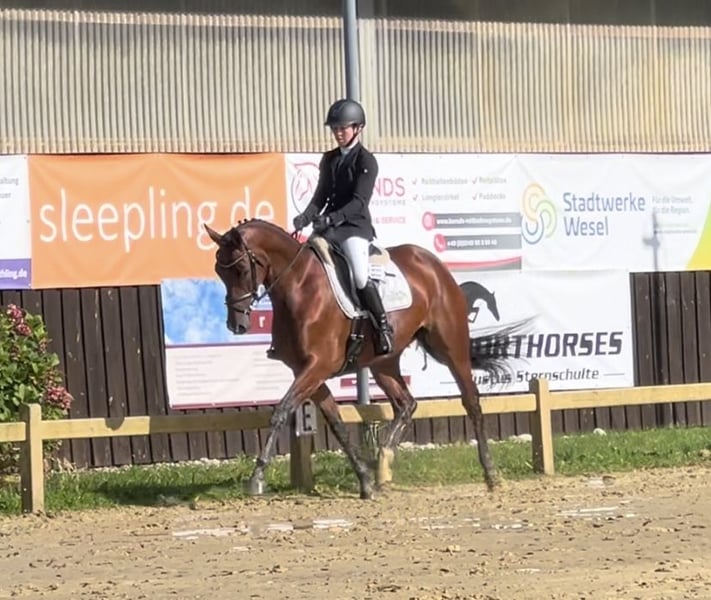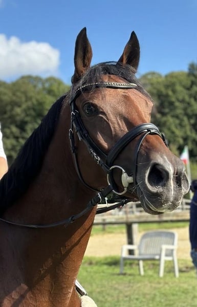For sale is this beautiful 6-year-old mare by Kros x Rilke! Kahlua is a sensitive mare who always aims to please her rider and strives to do everything correctly. She had a foal at the age of four and therefore still needs some time and further training. This year, she has been placed in Eventing E and A classes and has successfully completed A-level eventing. Current videos available upon request. We also have additional eventing and dressage horses for sale!