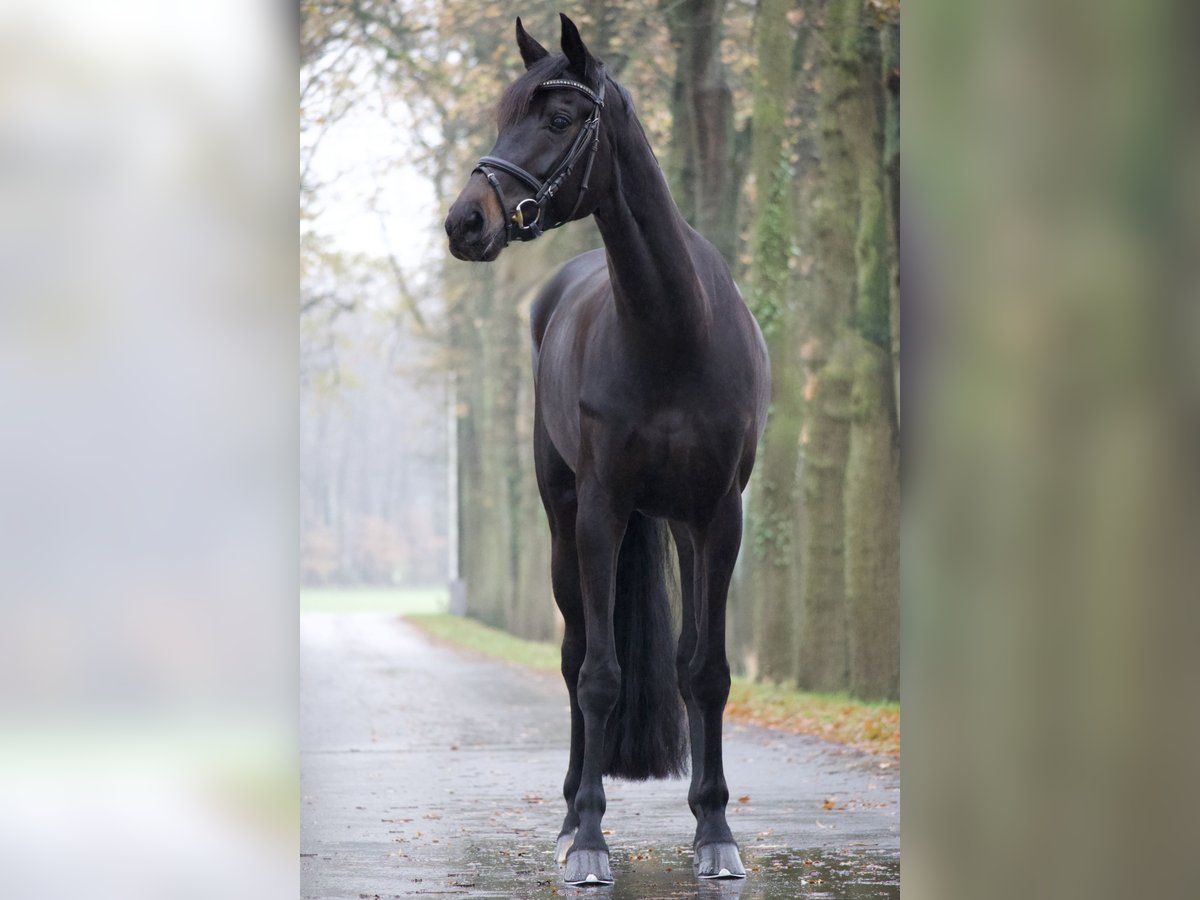 Hochbeinige Stute in dunkler Jacke fürs große Viereck