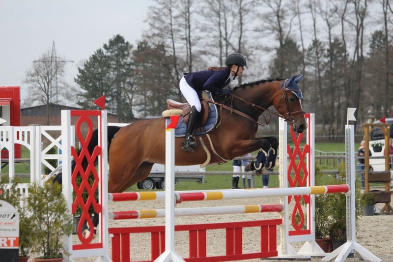 Due to personal changes and the cessation of equestrian sports, we are reluctantly selling our stunning 8-year-old mare. Her height is approximately 167 cm. We acquired her at the age of 4 after transitioning from ponies, and she has never taken a wrong step. She is always kind and relaxed, whether at competitions, training, or enjoying a nice ride in the woods (both alone and in a group)... You can do anything with her, and you can rely on her 100%. The mare knows her job and navigates every course with ease. She jumps everything and always forgives mistakes, and she is never "spooky." She is currently placed up to L level and is, of course, fully in training. She has not been further shown in dressage but performs confidently at A level! She is a super uncomplicated horse to handle and keep. No allergies, cough, or other illnesses. The mare is the perfect horse for someone transitioning from ponies or for anyone looking to get into show jumping. Videos etc. are available upon request.