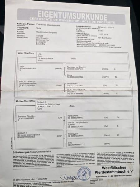 Unkomplizierte Dressurstute (2018) – viel Körper und angenehmes Wesen Schöne, korrekt gebaute Stute aus dem Jahr 2018, mit einer Stockmaß von ca. 1,70 m und viel Substanz. Abstammung: Vater: Zoom (Zack x Don Schufro) Mutter: Romanov Blue Hors x Weltmeyer II Diese Stute zeichnet sich durch ihr sehr gelassenes und unkompliziertes Wesen aus. Sie ist weder sensibel noch schreckhaft, was sie im Umgang und unter dem Sattel angenehm macht. Sie hat bereits viele Fohlen bekommen und wird momentan unter dem Sattel ausgebildet. Dank ihrer freundlichen Einstellung und interessanten Blutführung eignet sie sich sowohl für den Sport als auch für die Zucht. Merkmale: • Stute | 2018 • ca. 1,70 m • viel Substanz • ehrliches und zuverlässiges Wesen • nicht schreckhaft oder sensibel • hat Fohlen bekommen • derzeit in Ausbildung unter dem Sattel 📍 Weitere Informationen, Fotos und Videos auf Anfrage. Liebes, braves und korrektes Pferd ohne Stallgebrechen! Standort: Oud Gastel, NL. ☎️ 0031-610197456