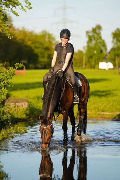 For sale is an impressive 8-year-old mare. This dark bay beauty captivates not only with her elegant appearance but also with her talent and willingness to work with her rider. She has already achieved multiple placings in L-level dressage competitions. **Features:** - **Breed:** German Riding Horse (Deutsches Reitpferd) - **Gender:** Mare - **Year of Birth:** 2016 - **Color:** Dark Bay - **Height:** 16.1 hh - **Training Focus:** Dressage This mare is ideal for someone who has the desire and time to grow together with a wonderful horse. She consistently demonstrates motivation and eagerness to learn, making her an excellent partner for talented dressage riders. Her harmonious conformation and affection for people make daily training a pleasure. She can be ridden alone or in a group, suitable for hacking out. If you are looking for a horse that seeks a strong bond with its handler and brings joy to everyday handling, this mare could be the perfect choice for you. Please do not hesitate to contact us for more information or to arrange a meet-and-greet. We look forward to introducing you to this talented mare in person. A trial ride fee of €50 applies, which will be deducted from the purchase price.