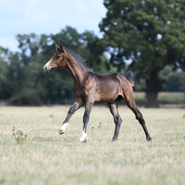 🌟 For Sale at Weaning (9 months) 🌟 Suraya Ellissimo May 2025 Bay Filly By Sezuan Donnerhall × Out of Raving Beauty D (by Rock forever) This striking filly is the complete package—graded Gold with an outstanding 8.8 at the 2025 British Breeding Futurity. She combines top-tier genetics, elegant type, and exceptional movement. Sired by the phenomenal Sezuan Donnerhall, renowned for power, elasticity, and modern frame, and out of the beautifully bred Raving Beauty D (by Rockafella, from the influential Florestan line). The dam line brings proven rideability, elegance, and correctness. Suraya Ellissimo is bred for the big arena and is already showing an uphill frame, light-footed gaits, and an inquisitive, trainable mind. This filly is already showing everything needed for top-level dressage: ⭐ Gold Futurity 8.8 – athletic, elastic, and powerful ⭐️Modern, refined type with correct limbs and frame. ⭐️Confident temperament and bold attitude, takes everything in her stride. ⭐️Attended shows and event venues ⭐️Regular handling, farrier, worming, passport, microchipped & start up vaccinations. Has been around heavy machinery, fully clipped (no sedation required) , loads and travels well. ⭐️For sale at weaning (9 months of age) A serious prospect for Dressage / Jumping or young horse classes, with the potential to develop into a high-level partner. 📩 Enquiries welcome to serious homes only