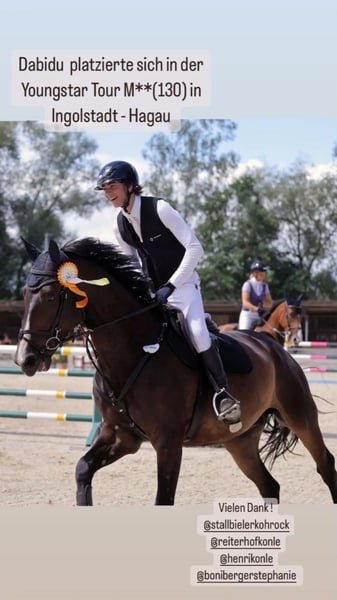 Wegen Auslandaufenthalt verkaufen wir einen jetzt 10 jährigen Wallach der mehr als 70 Platzierungen mit einem Amateur hat. Von Springpferde L bis S erfolgreich gegangen und M** mehrfach gesiegt. Er hat sehr viel Vermögen und ist vorsichtig am Sprung. Sehr brav und unkompliziert geht mit normaler Wassertrense im Parcours. Am Turnier ist er einfach zu managen und behält immer den Überblick. Dabi ist auch dressurmäßig einfach zu reiten. Er ist auch für Anfänger gut geeignet da er immer eine Lösung am Sprung findet und trotz seiner Größe auch einen kleinen Galoppsprung machen kann. Wird nur in gute Hände mit Pferdeerfahrung verkauft. Gerne können noch mehr Videos versendent werden bei Interesse. Standort Bayern!