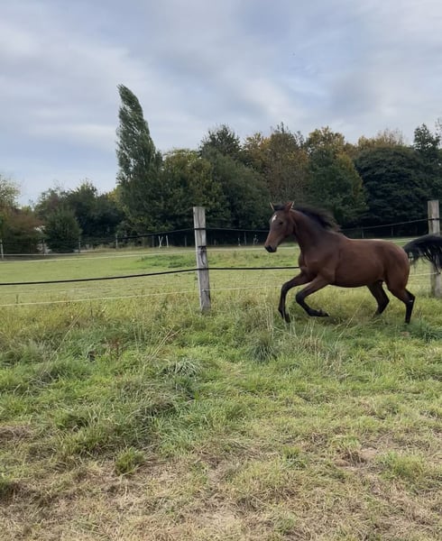 Zum Verkauf steht ein äußerst typvoller, einjähriger Wallach, geboren im Frühjahr 2024. Dieser charmante Braune überzeugt durch sein elegantes Exterieur, seinen klaren Kopf und sein ausgeglichenes, menschenbezogenes Wesen. Er verfügt über drei sehr gute Grundgangarten, zeigt sich im täglichen Umgang brav und lernwillig und ist bestens das Halftern, Führen, Putzen und den Hufschmied gewöhnt. Abstammend von Felissimo sowie aus einer Riccio x Delphi-Mutterlinie, vereint dieser Wallach beste Dressurveranlagung mit modernem Typ und korrektem Fundament. Das erwartete Endmaß liegt bei etwa 1,70 m. Der Preis ist verhandelbar.