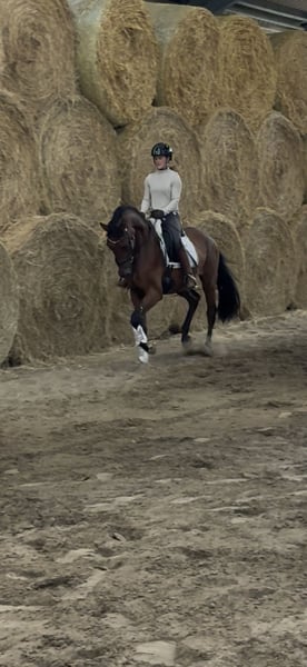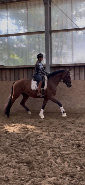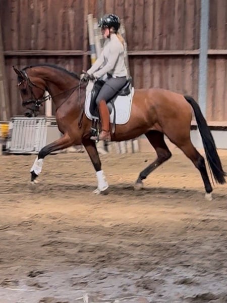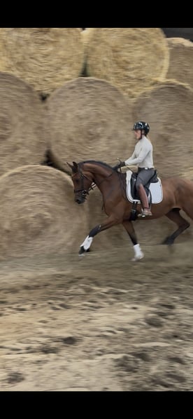 Zazou – 3-jähriger Wallach von Zuperman x Fürstenball Bei uns geboren und artgerecht aufgewachsen, beginnt Zazou nun behutsam mit seiner Ausbildung unter dem Sattel und zeigt sich dabei stets lernwillig, brav und angenehm im Umgang. Zazou hat aktuell eine Größe von 1,64 und ist somit ein nettes Damen Pferd oder für Umsteiger von Pony auf Großpferd interessant. Trotz seiner Größe bewegt er sich dennoch großrahmig und überzeugt mit drei überdurchschnittlichen Grundgangarten – besonders hervorzuheben ist sein raumgreifender, taktsicherer Schritt. Die dynamische Hinterhand und seine auffallend hohe Rittigkeit lassen auf eine vielversprechende Zukunft im Dressursport schließen. Zazou steht noch am Anfang seiner reiterlichen Laufbahn und eignet sich hervorragend für Reiter*innen, die sich ein talentiertes Nachwuchspferd mit Perspektive sichern möchten. Er ist: • Verladefromm • Schmiedefromm und regelmäßig dem Hufschmied vorgestellt • Regelmäßig entwurmt • Zahnkontrolle wurde durchgeführt Aktuelle Röntgenbilder mit Hals und Rücken ohne Befund liegen vor. Ein vielversprechender Nachwuchs für Sport oder gehobene Freizeit – aus bestem Hause und mit solider Grundausbildung.