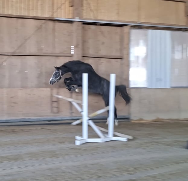 Verkaufe jungen Westfaler Wallach – ideal für Springbegeisterte! Zum Verkauf steht ein vielversprechender Westfaler Wallach, geboren im Jahr 2023. Dieser elegante Rappschimmel beeindruckt durch sein freundliches Wesen und seine hervorragende Eignung für das Springreiten. Mit einem Stockmaß von 165 cm bietet er die perfekte Größe für ambitionierte Reiter, die einen zuverlässigen Partner suchen. Der junge Wallach zeigt bereits vielversprechende Springfähigkeiten. Seine robuste Konstitution und sein angenehmes Temperament machen ihn zu einem idealen Begleiter für den Sport und die Freizeit. Mittlerweile ist er mit sattel anlobgiert und duldet auch schon das Reitergewicht , er ist sehr brav und macht alles geduldig mit! Bei steigendem Ausbildungsstand, steigt natürlich auch der Preis! Bei Interesse oder für weitere Informationen stehe ich gerne zur Verfügung. Überzeugen Sie sich selbst von diesem talentierten Pferd!