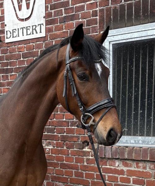 Eleganter Westfale-Wallach, geboren im Jahr 2022, sucht einen engagierten Reiter, der sein Potenzial erkennt. Mit einem Stockmaß von 166cm präsentiert sich dieser braune Nachwuchswallach bereits sehr vielversprechend. Der Wallach ist auf Dressur ausgerichtet und zeigt eine gut gerittene Grundausbildung. Sein angenehmes Temperament und seine ausgeglichene Art machen ihn zu einem zuverlässigen Partner für ambitionierte Reiter, die Wert auf einen gut erzogenen und lernbereiten Dressurpartner legen. Dank seiner guten Abstammung und seiner vielversprechenden Entwicklung ist dieser Westfale-Wallach ideal für den Aufbau einer erfolgreichen Dressurkarriere. Ein Pferd mit großem Potenzial, das bereit ist, gemeinsam mit seinem neuen Besitzer die nächsten Schritte in der Dressur zu gehen. Für weitere Informationen oder einen Besichtigungstermin stehe ich gerne zur Verfügung.