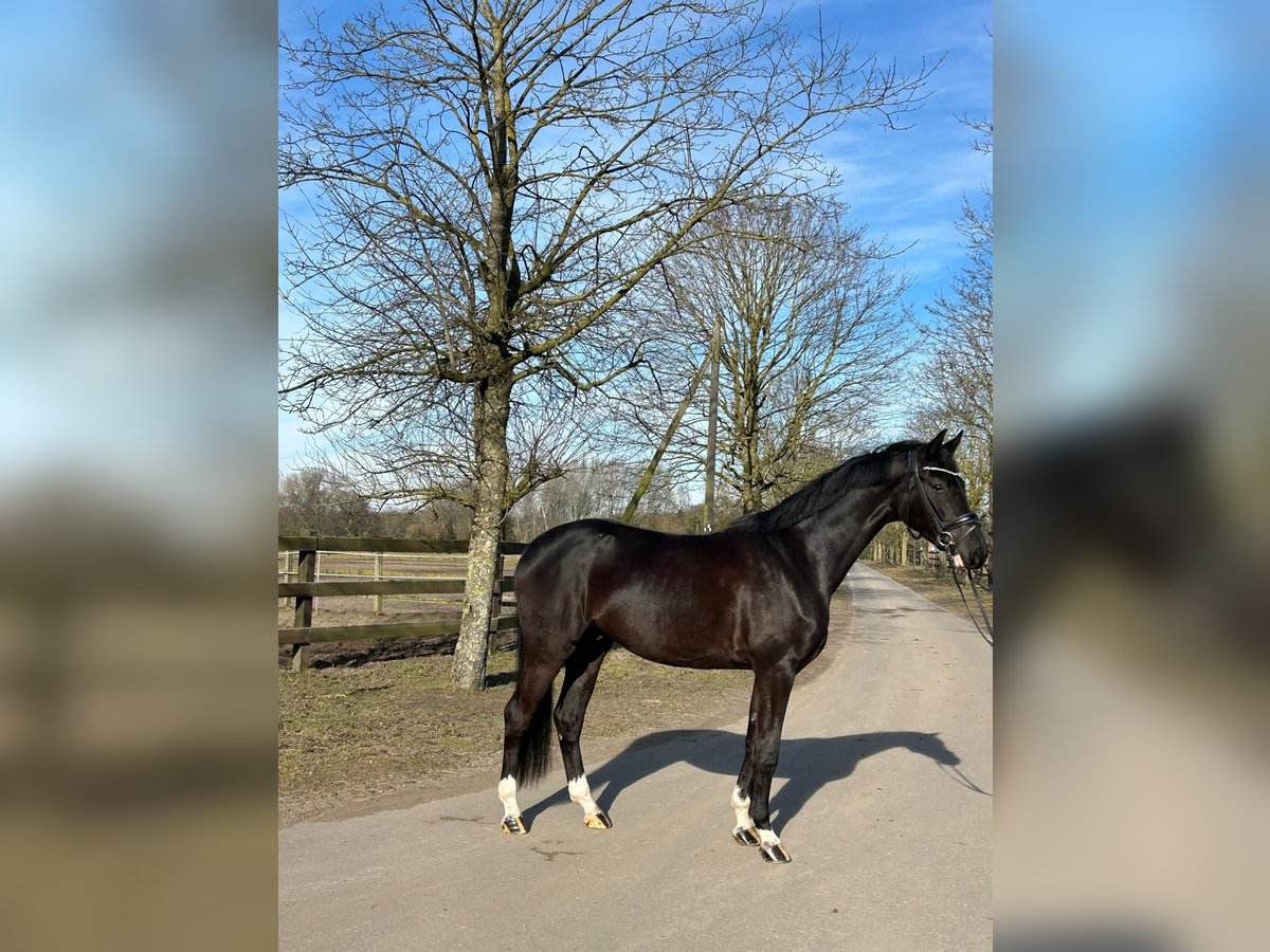 This modern black gelding stands out as a promising young dressage prospect. His elegant appearance and balanced temperament make him an ideal horse for ambitious riders who prioritize quality and willingness to perform. A genuine talent that, with the right training, has the potential to achieve great things.