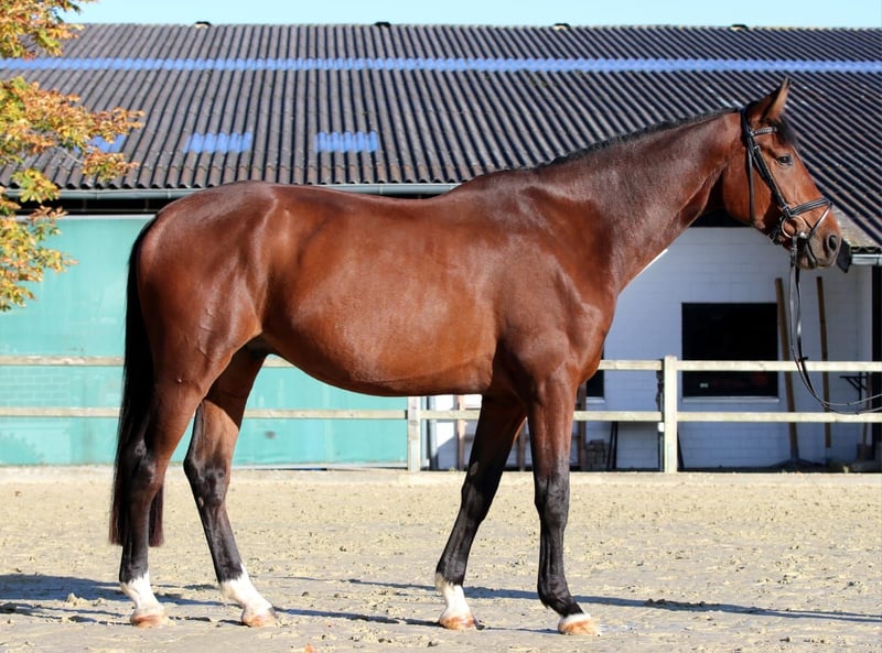 Dreamer is an absolute dream horse that leaves nothing to be desired. This beautiful bay gelding impresses with his powerful yet elegant appearance. Currently in training with a young rider, he demonstrates a strong willingness to learn. Under saddle and in handling, he is consistently calm and steady-minded. Additionally, he is equipped with great courage and confidence over jumps. He also possesses three very good basic gaits, making him suitable for versatile use. If you are looking for a talented young horse that excels in both show jumping and dressage, this gelding could be the perfect match for you. If you are interested or have further questions, please feel free to contact me. You are welcome to arrange a viewing and a trial ride! Videos can be sent via WhatsApp.