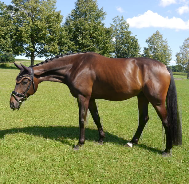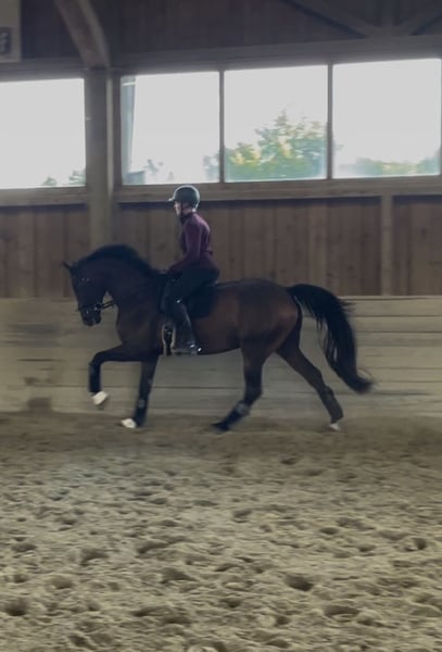 Zum Verkauf steht ein vielversprechender Westfalen-Wallach, geboren 2019, Stockmaß 1,69 Meter, aus bester Abstammung von Finest x Diamond Hit. Mit seiner edlen dunkelbraunen Erscheinung und seinem charmanten Charakter zieht er sofort die Blicke auf sich. Schonend angeritten und mit viel Zeit zum Wachsen gefördert, präsentiert er sich heute als eleganter und motivierter Partner. Ausbildungsstand A-Dressur, erste L-Lektionen begonnen, erste kleine Sprünge absolviert – mit großem Potenzial für die Zukunft. Er zeigt große Lernbereitschaft und steht fein an den Hilfen. Aufgrund seines Alters und Ausbildungsstandes ist er jedoch nicht als Anfängerpferd geeignet, sondern sucht einen ambitionierten Reiter mit Jungpferdeerfahrung, der seine Ausbildung weiter fördert. Im Umgang ist er unkompliziert, brav beim Schmied und Verladen; gelassen im Gelände, sowohl alleine als auch in der Gruppe. Röntgenbilder vom September 2022 liegen ohne Befund vor. Außerdem ist er regelmäßig geimpft, entwurmt und die Zähne wurden auch regelmäßig gemacht. Ein ideales Pferd für Reiter mit Ausbildungserfahrung, die einen talentierten Partner für den Dressursport suchen. Er wird schweren Herzens aus Zeitgründen abgegeben. Es wird ein Zuhause für ihn gesucht, in dem er weiter gefördert wird. Weitere Informationen auf Anfrage (gerne per WhatsApp).