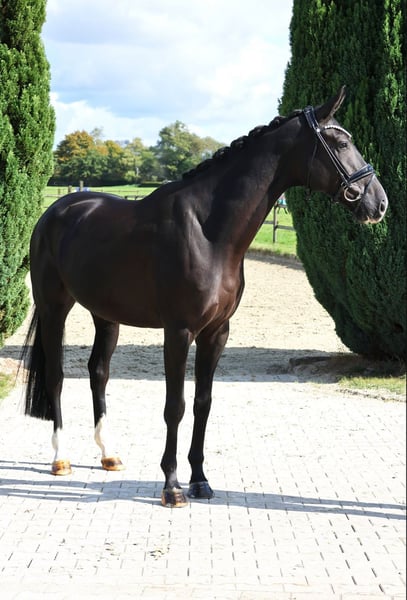 Ten pięcioletni wałach to absolutny okaz. Prezentuje się długonogi w czarnej sierści i pięknym wyglądzie. Mimo że ma już 5 lat, dopiero od niedawna jest pod siodłem. Ostrożny, ale grzeczny, przeszedł swoje pierwsze okrążenia na ujeżdżalni. To wspaniałe koni do szkolenia, jednak nie jest odpowiedni dla początkujących. Jest w posiadaniu hodowcy. Chętnie prześlemy Państwu wideo.