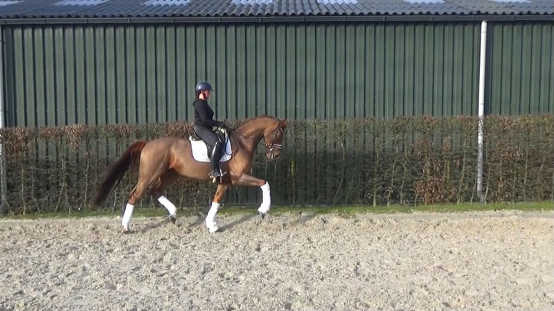 2020 geboren Wallach. Fuchs, ca. 1.70m La Vie x Vitalis Westfalen. Pferd mit 3 sehr gga. Sehr brav, im Umgang und unter Sattel. Der ist spat angeritten um ihm die Zeit zu geben zum reifen. Deswege noch nicht so weit ausgebildet für ein 6 jr, also sicher ein Pferd das es lohnt aus zu bilden. Der ist jetzt so auf Dressurpferde A niveau. Immer arbeits bereit und nicht guckig. Der hat kein unarten im Stall. Hat ein sehr gute aktuelle tüv incl Rücken. Preisvorstellung € 22.000 + mwst ( 21%) Pferd steht in Kinrooi ( B). Tel: 0031683948093