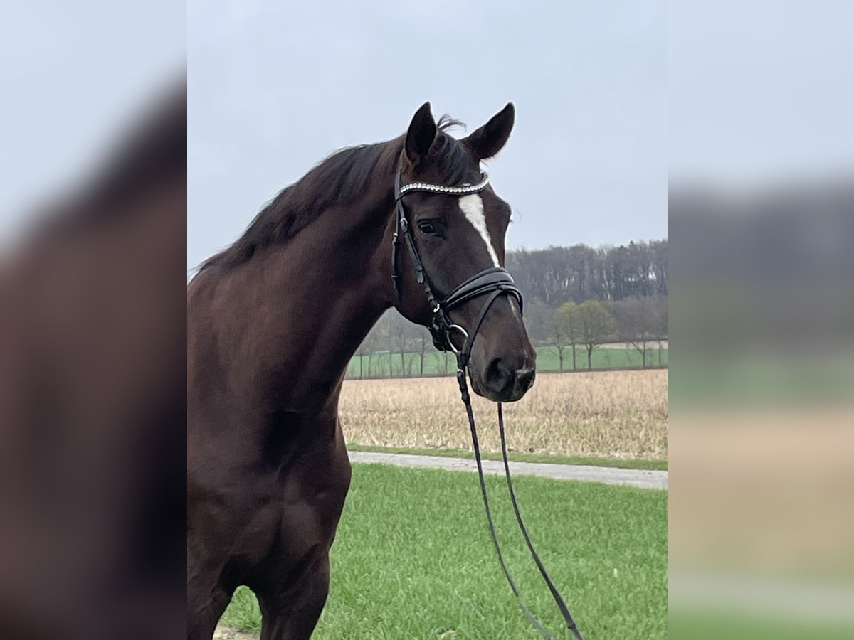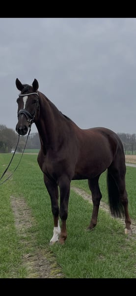 Zum Verkauf steht dieser sechsjährige Wallach von Finnigan aus einer Damon Hill Mutter in begehrter Dunkelfuchsjacke direkt vom Züchter. Aus dem direkten Mutterstamm sind bereits Grand Prix Pferde hervorgegangen. Die Mutter Donna Castania ist auch Großmutter zum Bundeschampion For Real. Wie all unsere Verkaufspferde ist dieser sympathische Wallach bei uns geboren und wurde aufgrund seiner Größe vierjährig angeritten und schonend aufgebaut. Finni zeichnet sich durch seine hervorragende Rittigkeit mit angenehmem Vorwärtsgo und leichter Anlehnung aus. Er ist ein grundehrliches, sensibles Pferd, welches einen gefühlvollen Reiter mit Spaß an der dressurmäßigen Arbeit sucht. Bei weiteren Fragen melden sie sich gerne telefonisch unter 0170 7741957.