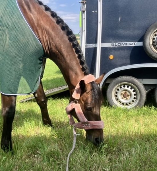 I am selling my beautiful 8-year-old gelding, approximately 1.68 meters in height, as a leisure horse / companion. He is conditionally rideable due to a tendon injury sustained last year. He enjoys relaxed rides and light dressage work, which are all fine. Unfortunately, we have now reached a point where more intense activity, such as tighter turns, becomes uncomfortable for him. My riding ambitions no longer match what my little horse can handle. Therefore, with a heavy heart, I have decided to find him a loving home as a companion horse, where he can simply be a horse and enjoy leisurely rides or gentle exercise. He also always enjoyed groundwork. He is fully vaccinated and has been shod on the front for the past six months due to his tendon issue (not a special shoeing). Previously, he was always barefoot. He has a good forward drive, likes to look around, and can be startled or jump to the side occasionally — but nothing serious. He does not know how to buck or rear. Currently, he is in a box with daily turnout in a herd of geldings. If you think he might suit you, please feel free to contact me. I can assist with transport depending on the distance.