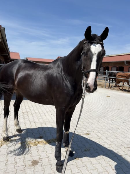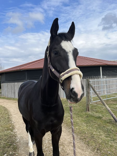 With a heavy heart, I am looking for a new, loving home for my gelding Monty. Unfortunately, I can no longer manage to care for two horses at the same time, both financially and in terms of time, and therefore wish for him to have a place where he will be well cared for. Monty is a very large (approximately 1.78 m), slender, and elegant gelding who, despite his size, is extremely well-behaved, well-trained, and incredibly people-oriented. He loves being the center of attention, enjoys any kind of attention, and is simply a treasure to handle – whether during grooming, walking, or groundwork. Unfortunately, Monty has been diagnosed with arthritis in one front leg, and there is also a suspicion of shivering, which is why he is being offered for far below his value. Due to these diagnoses, he should only be ridden for leisure purposes. He enjoys nice rides, light dressage work, cavaletti work, and groundwork very much. He is very skilled in groundwork/dual activation (Geidner) and long lining, as I have regularly worked with him on this since he was four years old. Due to his health circumstances, Monty needs a horse-friendly open stable environment (box housing is not an option for him; he is currently in a herd in an active stable) and someone who enjoys his company, cares for him, and gives him the attention he deserves. It is important to me that Monty goes to a loving and permanent home where he will be cared for and understood. No sales to dealers or riding schools. He will be placed with a protection contract and a protection fee, so I can be sure that he will lead a good, horse-friendly life in his new place. If you are genuinely interested in my Monty, I look forward to hearing from you at 0160 945 363 11.