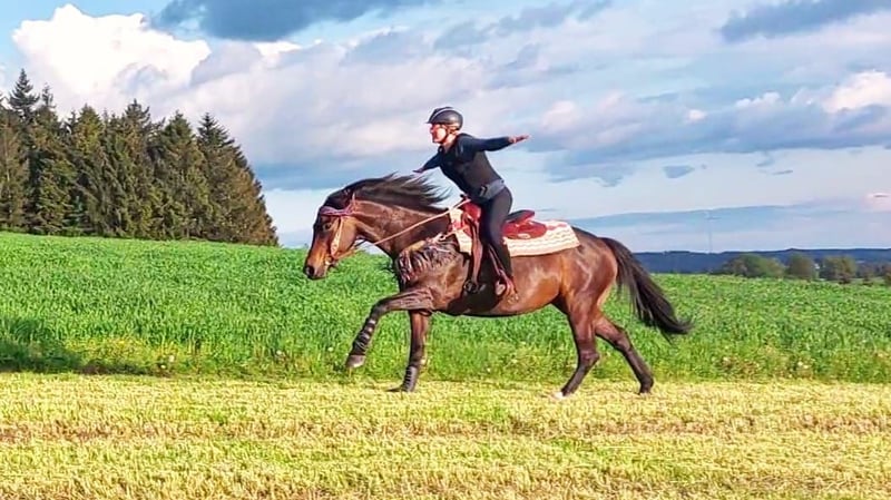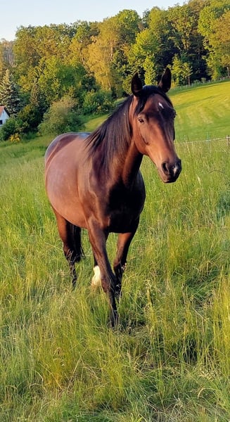 Sienna ist eine wunderschöne,11 Jährige ca. 155 cm große Württemberger Mix Stute. Sie wurde schonend,mit fünf Jahren, eigerritten und stand dann nochmal ein Jahr auf der Wiese,seit dem wird sie Freizeitmäßig im Gelände geritten. Unter anderem ist sie schon mehrere Mehrtägige Wanderritte gelaufen wo sie mit viel Herz auch schwierige Aufgaben meistert denn für,,Ihren,, Menschen gibt die alles was sie hat. Sienna ist im Gelände eher flott unterwegs und hat bequeme Gänge. Sie ist kein Anfänger Pferd beim richtigen Menschen aber sicher eine Bereicherung. Ihre große Leidenschaften sind die Bodenarbeit und Kunststücke da ist sie voll dabei. Sienna ist gesund , regelmäßig osteopathisch behandelt und alle zwei Jahre beim Zahnarzt. Sie läuft barhuf bzw... mit Hufschuhen können eventuell erworben werden. Wir wünschen uns für sie liebe , verständnisvolle aber auch konsequente und Pferde erfahrene Menschen. Sie braucht zwingend eine Offenstallhaltung oder ähnliches,keine Paddock Box ec... Also wenn du denkst du bist der Mensch für Sienna dann melde dich gern Telefonisch oder per WhatsApp bei mir 017670703537 .und lerne sie kennen. Um reit Tourismus zu vermeiden berechnen wir für ein Probereiten 30 Euro was bei Kauf gut geschrieben wird. Zubehör kann teilweise erworben werden