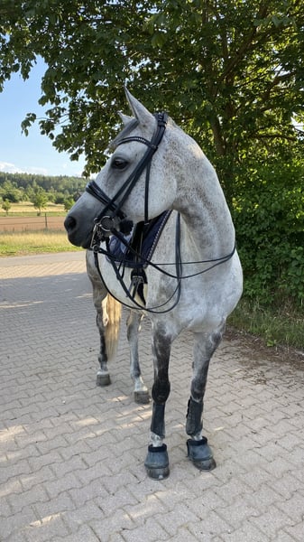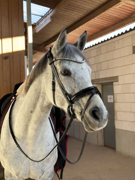 With a heavy heart, I am looking for a new home for my 12-year-old Württemberger mare. Milly has been successfully presented at competitions up to L-level with a double bridle and shows herself to be well-behaved and relaxed in daily handling. Under saddle, she is a strong-willed but reliable partner – with the right person by her side, she will go through thick and thin. She is blacksmith and loading friendly, knows herd living, individual paddocks, and the horse walker. In terms of social behavior, she is dominant and strong-willed. So far, she has almost always established herself as the lead mare in the herd, which has caused her stress in larger groups. In smaller groups or in manageable conditions, she feels significantly more comfortable and is more balanced. Due to her double lineage (Louis de Funes x Monsum), I could also envision the option of using her as a broodmare. I wish for a loving home with plenty of time for being with the horse, daily turnout in a small group, and plenty of hay. Milly is not a beginner's horse but offers a wonderful opportunity for someone who can give her patience, time, and affection. Currently, she is in a box with a window, goes to the horse walker daily, and regularly has access to pasture or paddock. Current X-rays are available. (18 images from September 2025) ➡️ A good home is more important than the price – only in the best hands.