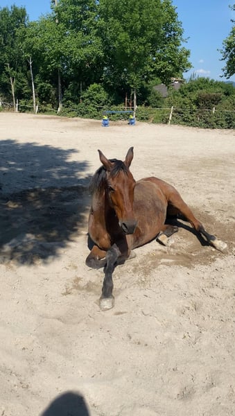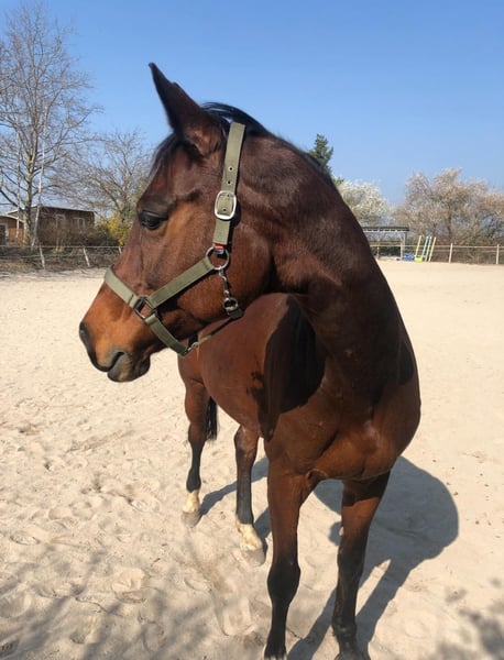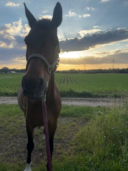 Wir verkaufen die Stute, da sie für unsere OffenstallHerde leider zu ranghoch ist. Action ist eine 18 Jahre alte sehr liebe und vernünftige Stute von der wir uns gezwungenermaßen trennen müssen. Sie ist top gesund, war laut Vorbesitzer nie lahm, ist geimpft, entwurmt und die Zähne sind ebenfalls auf dem aktuellen Stand. Action ist sehr menschenbezogen und braucht einen liebevollen und zugewandten Menschen an ihrer Seite. Sie eignet sich bestens als Freizeitreitpferd, ist geländesicher und macht sehr gerne Bodenarbeit. Näheres unter: +49 176 48264 823 VB 4.000 Euro incl. Zubehör Sattel etc.
