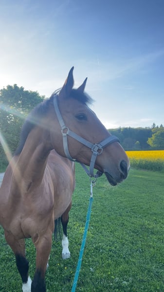In Bella verliebt man sich erst auf den zweiten Blick… dann aber richtig: erstmal unscheinbar wirkend, besticht sie dann aber durch ihre Hingabe zur Arbeit, ihre liebevolle Anhänglichkeit, ihren sozialen Umgang mit anderen Pferden, ihre Kinderliebe… diese Liste könnte noch ewig weitergehen. Sie kam vom Gestüt Hoher Odenwald zu uns, da sie aus der Zucht genommen wurde. Seither hat sie die Herzen der fortgeschrittenen Reitschüler im Sturm erobert. Sie springt sehr gerne (wird dabei aber auch ehrgeizig und kann auch mal buckeln vor Freude) und geht einzelne Dressurlektionen mit Freude. Sie will verstanden und gefördert werden und daher suchen wir für sie zum nächstmöglichen Zeitpunkt ein neues 5-Sterne Zuhause (gerne Offenstall/ Herdenhaltung) mit versierten Reiter*in, wo sie sie selbst sein darf. Kein Schulbetrieb, kein Händler, keine Anfänger. Sie läuft barhuf und ist schmiedefromm und geimpft. Auch die Zähne wurden regelmäßig geprüft und ein einwandfreies Blutbild aus 2025 liegt vor. Beim Hängerfahren steht sie gerne breit. Wir freuen uns über ernstgemeinte Anfragen, die dieser tollen Stute einen wohlverdienten Für-Immer-Platz bieten können. Platz vor Preis Anfragen gerne per WhatsApp, Videos auf Anfrage