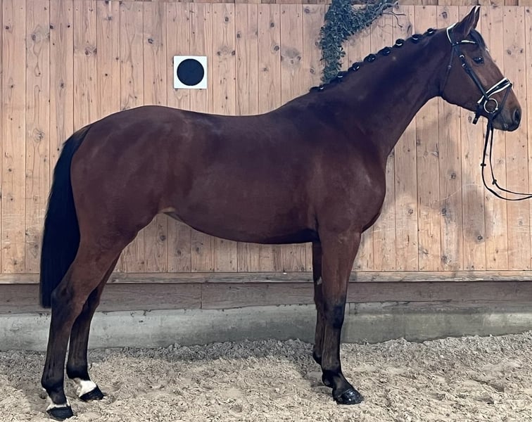 Hier sehen Sie eine Stute die mit sehr viel Springvermögen und hoher Reitqualität ausgestattet ist. Sie ist bereits schon sehr ordentlich ausgebildet, zeigt sich unter dem Sattel sehr lernwillig und brav