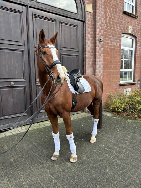 Zum Verkauf steht unser 13 Jähriger Fuchswallach. Don Glorio ist bis Klasse S** platziert, er ist stets arbeitsbereit und absolut lektionssicher. Charakterlich ist er absolut unerschrocken und gibt für seinen Sportpartner alles. Don Glorio hat im Jahr 2024, durch einen Weideunfall sein linkes Auge verloren, doch auch das hinderte ihn nicht weitere Erfolge auf Turnieren zu sammeln. (Weiterhin erfolgreich nach Verlust des Auges) Wir würden uns wünschen, dass Don Glorio ein Lehrmeister für eine junge/ einen jungen ambitionierten Reiter/in sein kann und den Weg in die schwere Klasse erfolgreich ebnet.Es ist uns aber auch wichtig das Don Glorio weiterhin viel Liebe erhält und die Aufmerksamkeit bekommt die er verdient. Für Fragen stehen wir jederzeit zur Verfügung.