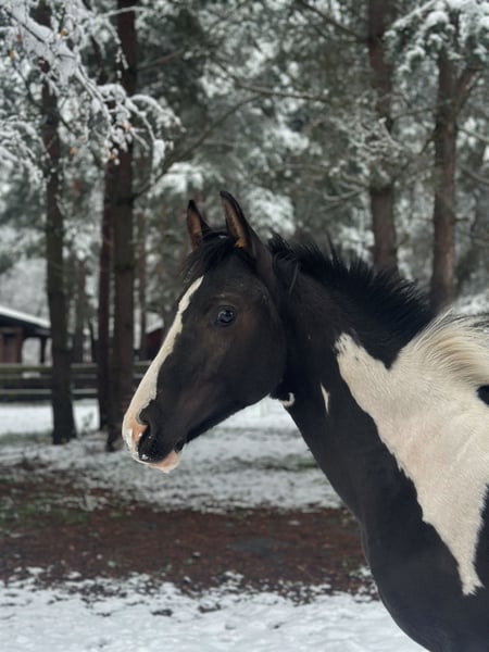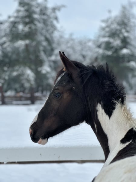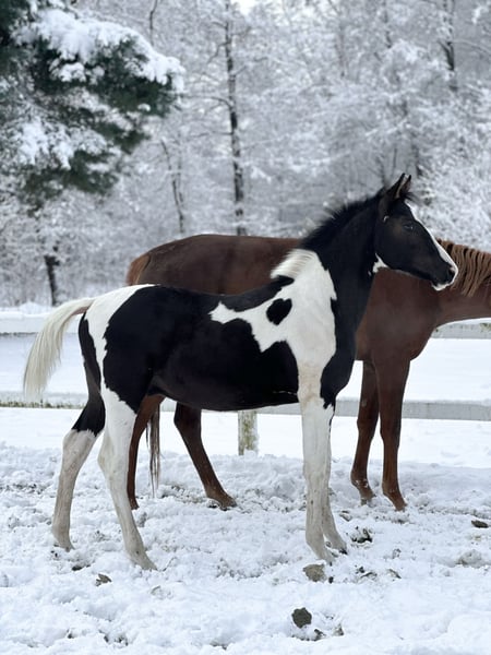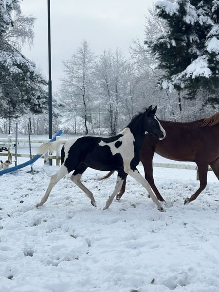 M-Locarno è un stallone di razza Zangersheide nato il 19 maggio 2025, di colore carico-sorretto. È figlio di M-Hidalgo, un stallone KWPN, e della fattrice Gazela, figlia di Igor. Lostallone ha un carattere davvero fenomenale. È un puledro molto coraggioso, abituato a vivere vicino a una strada nazionale, quindi nessun veicolo, motore, tir o sirene lo impressionano. Viene portato al pascolo ogni giorno e cresce in un branco. Possiede un’enorme energia, ma allo stesso tempo è molto attento alle persone. Collabora con entusiasmo e segue il conduttore con curiosità in ambienti sconosciuti. È fiducioso e non si impressiona né con il montaggio né con lo svestimento del bridon, né con il lavoro al guinzaglio. Si lascia mettere tutte le zampe e ha già ricevuto addestramento di base. Adora essere spazzolato e la presenza umana.