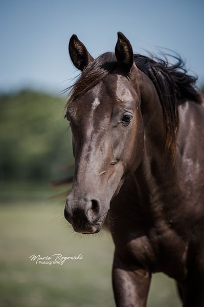 Giovane stallone nato tardi (12.09.2022) da un programma di allevamento a colori. Figlio dell'eccezionale purosangue inglese in crema fumé T C F Palladium xx (True Colours Farm Canada) e di un'altrettanto rara cavalla warmblood classica champagne (!!!) (ZfDP) da Rapptänzer OLD - Khalvin Khlein KpM (Partbred Arabian special champagne USA). Nata in Francia con passaporto Zangersheide (libro principale) e IFCE. Giovane stallone molto armonioso e compatto con un semplice gene crème, che può anche trasmettere. Versatile e polivalente. La sua altezza finale sarà di circa 162-164 cm all'età di sei anni. Ora è il più giovane del gruppo e si sta godendo la sua giovinezza all'aperto allevando grandi maschi, mantenendo il contatto quotidiano con le persone e gestendole con curiosità e determinazione in scuderia. L'alimentazione, la toelettatura, la cura degli zoccoli, la conduzione, il percorso a terra e il carico (trasporto in autocarro) sono familiari, così come la sverminazione e la vaccinazione. L'ultimo Smoke va in mani attente e premurose, può rimanere per un altro anno per l'allevamento in base alle esigenze (con uno stallone anziano) e sarà ulteriormente addestrato.