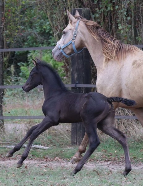 Zangersheide | Buckskin (homozygous cream carrier) | born 09/2022 | currently growing Zangersheide Main Studbook + IFCE Genetics: E/_ A/_ Cr/n PUFF - MY LAST SMOKE Z is a compact, harmoniously built young stallion with a friendly expression and clear presence. He is attentive, calm, and curious in handling, without being intrusive. His manageable size and solid foundation make him versatile – suitable for future leisure riding as well. He is raised appropriately in a mixed-age young stallion group, has daily contact with people, and is familiar with basic routines such as grooming, leading, feeding, loading, and hoof care. Sire: T.C.F. Palladium xx (Canada) – English full Thoroughbred in smoky cream Dam: Khreme Kassis GF – champagne-colored warmblood mare (ZfDP), sired by Rapptänzer OLD and Khalvin Khlein KpM (champagne partbred Arabian, USA)