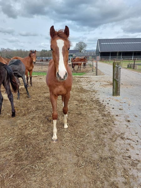 3-jarige voshengst met chrome Uitstekende bewegingen en een geweldig temperament Wordt maximaal 1,65 m Perfecte gezondheid Heeft een litteken op de rechterachterbeen Maar is volledig gekeurd in juni 2024 Volledig veterinaire rapport en röntgenfoto’s beschikbaar