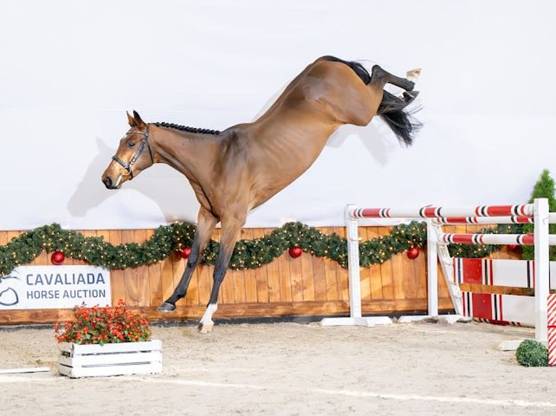 Grandson of the renowned Stakkato Gold, out of a 1.40m jumping mare! This four-year-old stallion features a modern type, combined with limitless scope and excellent hind leg technique. Landino Boy Z is already under saddle and ridden. He is a son of Landino VDL (Stakkato Gold x Cilton), a 1.35m jumper with Alex David Gill, winner of the NRPS stallion test, and brother to Aksai Chin VDL (1.60m, Suzanne Tepper). He is closely related to 1.60m jumpers such as Dakar VDL (Shawn Casady), VDL Montreal (Jur Vrieling), VDL Pessoa (Vitor Alves Teixeira), and Bubalu VDL (Jur Vrieling). His dam, Kalinka Van De Hengmeng, competes in jumping classes up to 1.40m (Meghan Gillot), and is the half-sister of Just Do It (1.40m, Jay Halim). She is also closely related to the 1.50m jumper Lablue (Nour Hazem). His damsire, Etoulon VDL (Toulon x Calvados), jumped 1.50m with Jur Vrieling. He is a well-known sire, father of 1.60m stars such as Ebanking (Joseph Stockdale) and Obama van Ostaayen (Abdel Said). Grandson of Stakkato Gold from a mare competing at 1.40m! The 4-year-old Landino Boy is a modern, strong horse with great jumping potential and excellent hind leg work in the jump. He is currently ridden under saddle. Son of Landino VDL (Stakkato Gold x Cilton), a 1.35m jumper with Alex David Gill, winner of the NRPS stallion licensing, and half-brother to Aksai Chin VDL (1.60m, Suzanne Tepper). He is closely related to 1.60m jumpers such as Dakar VDL (Shawn Casady), VDL Montreal (Jur Vrieling), VDL Pessoa (Vitor Alves Teixeira), and Bubalu VDL (Jur Vrieling). His dam, Kalinka Van De Hengmeng, jumps up to 1.40m (Meghan Gillot), and is the half-sister of Just Do It (1.40m, Jay Halim). She is also related to the 1.50m jumper Lablue (Nour Hazem). Damsire: Etoulon VDL (Toulon x Calvados), who jumped 1.50m with Jur Vrieling, a renowned sire of 1.60m stars such as Ebanking (Joseph Stockdale) and Obama van Ostaayen (Abdel Said). Videos available via WhatsApp at +48 502 141 158. This horse has had his first competitions, with the possibility of castration. Currently in rest due to rider absence, hence the attractive price. Great jumping potential. Participant in Cavaliada Auction 2024. Pedigree: https://www.horsetelex.com/horses/pedigree/2251409/landino-boy-z