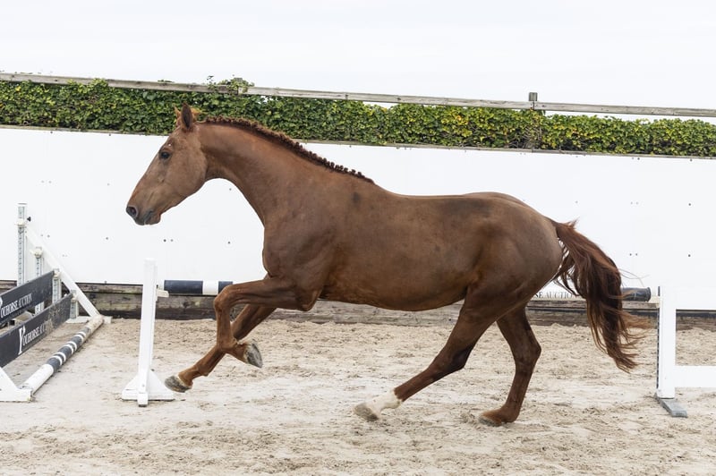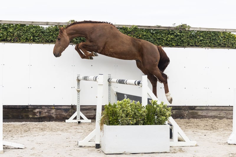 Horse with very quick reflexes, careful on the jump and a bold appearance. Shows quality and attitude as you like to see in a sport horse. Full sister of Etoulon. Not yet under saddle. Sire JUS DE POMME – 1.60m Internationally proven stallion, passes on scope, reflexes and attitude. Dam KAREUSA S – 1.25m Damline / family Granddam: UTAREUSA – 1.00m Further in the line: DENFER VDL Z – 1.30m (approved stallion) DEFENDER VDS Z – 1.45m (approved stallion) DEREUSA S – 1.60m INFERNO BF – 1.45m ETOULON VDL – 1.50m (approved stallion) TIME-BREAKER S Z – 1.50m LAREUSA S – 1.55m Approved stallions in the line: JUS DE POMME, TOULON, CALVADOS, NUMERO UNO, DOMINATOR 2000 Z