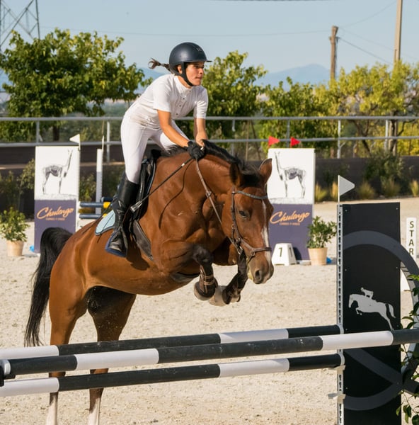 Chiva (Cirhus x Libero H) es la yegua soñada de un niño o un amateur. Siempre está al otro lado, es fácil, técnica, correcta. Te obliga a montar bien a la vez que perdona todos los errores que el jinete pueda cometer. Perfecta tanto si quieres iniciarte en competición como volver a coger confianza con un caballo que te acompañe desde los primeros pasos a todo lo que quieras llegar. Tiene experiencia hasta el 130, un completo seguro de vida hasta el 120. Es la favorita del herrador, el veterinario y el groom. Carga y descarga sin problema, va al campo sola o acompañada, totalmente a prueba de bombas. Se puede esquilar suelta en el box, convive perfectamente en paddock con otros caballos. Es la yegua que hace que tu hijo se enamore de este deporte o la que hace que un jinete coja confianza, sea competitivo y se divierta en cada clase y cada recorrido. Tiene leve kissing, pero no la molesta en absoluto. Se encuentra en Madrid. Disponible para prueba