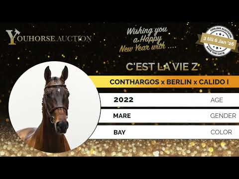 C’est La Vie Z is a truly beautiful and complete horse with presence. She is not only a quality jumper, but in our opinion also a very interesting prospect for the hunter ring. She has the right way of moving, the right way of jumping and an excellent mentality. Her character is calm and cooperative, yet attentive and willing. Although she does not yet have course experience, she jumps in a very light-footed way. She shows an excellent front leg technique and a correct, active hind leg. Her jump is consistent and harmonious, making her very pleasant to ride and attractive to watch. This is a horse with a wonderful character who gives confidence and clearly enjoys her work. We are very curious to see whether the American hunter market will already discover this talent during our auction. If not, we are convinced it will happen in the future. The rider who purchases this horse will enjoy her greatly and will undoubtedly steal the show. Sire Conthargos (Converter I x Carthago) competed at 1.35m level and is a proven sire of international top horses such as Cocolina (1.70m), Concona (1.65m) and Condara (1.65m). Conthargos is known for passing on quality, elasticity and a modern jumping style, traits highly valued in the hunter market as well. Dam Be Quick (Berlin x Cassini I) comes from a strong sport family and combines the blood of Berlin (1.60m) and Cassini I (1.60m), known for power, balance and good rideability. Second dam Carolina (Calido I) produced several international sport horses, including Hotshot (1.60m CSI5*), Ritchie Ricardo VR (1.45m), Neymar (1.35m) and Ogano’s Boy Z (1.30m), confirming the strength of this damline. Third dam Halesia I (Capitol I) produced multiple sport horses such as U-White Askari (1.40m), Enjoy I (1.40m) and Captain Fire (1.40m). The Capitol I influence adds scope and technique. Fourth dam Howa (Sable Skinflint xx) is the foundation of this family, which has produced several horses competing at 1.40m and 1.45m level. C’est La Vie Z combines elegance, technique and temperament with a pedigree full of international sport. A horse that fits perfectly in both the showjumping arena and the hunter ring.