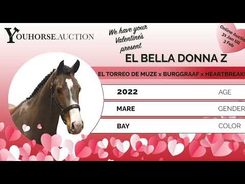 A horse with blood, big canter and long-term potential El Bella Donna Z shows a big canter and canters clearly uphill, which will feel comfortable to ride later on. She judges the fence well, is careful and shows plenty of blood and determination. The hind leg is well placed underneath, allowing her to jump easily and naturally. According to the breeder, she jumps even better at home and may have been slightly impressed here, while everything she already shows comes with a lot of ease. A horse that can be developed broadly and one that will continue to surprise as training progresses. An interesting sport prospect with quality and attitude. Sire El Torreo de Muze (Taran de la Pomme x Tolano van ’t Riethof) competed internationally up to 1.70m Grand Prix level and won at CSIO and CSI5* level. He is licensed with BWP and Zangersheide and is known for passing on blood, reflexes, canter and technique. El Torreo de Muze has produced several international top-level showjumpers. Damline The dam is Foxy Lady (Burggraaf), herself competing at 1.35m level. Burggraaf competed internationally at 1.60m and is a proven sire of scope and competitive attitude. This direct damline produced several international sport horses: – I’m Monte Carlo Z (I’m Special de Muze), international 1.45m – Packman de Rêve (Nabab de Rêve), international 1.50m – Excellentia Z (El Torreo de Muze), international 1.40m – Ragnar VDB (Emerald van ’t Ruytershof), 1.30m – Quantum de Rêve (Nabab de Rêve), approved AES stallion, 1.35m The second dam Watina Heartbreaker (Heartbreaker) further confirms the performance with: – Homer de Rêve (Nabab de Rêve), international 1.55m – Irco (Darco), international 1.45m – Flicka (Grison van den Bisschop), 1.30m – Jelka (Vigo d’Arsouilles), 1.30m – Karlijne (Vigo d’Arsouilles), 1.30m Further back, the damline traces to Raffinesse and Akazie xx, reinforcing blood, durability and sport across generations.