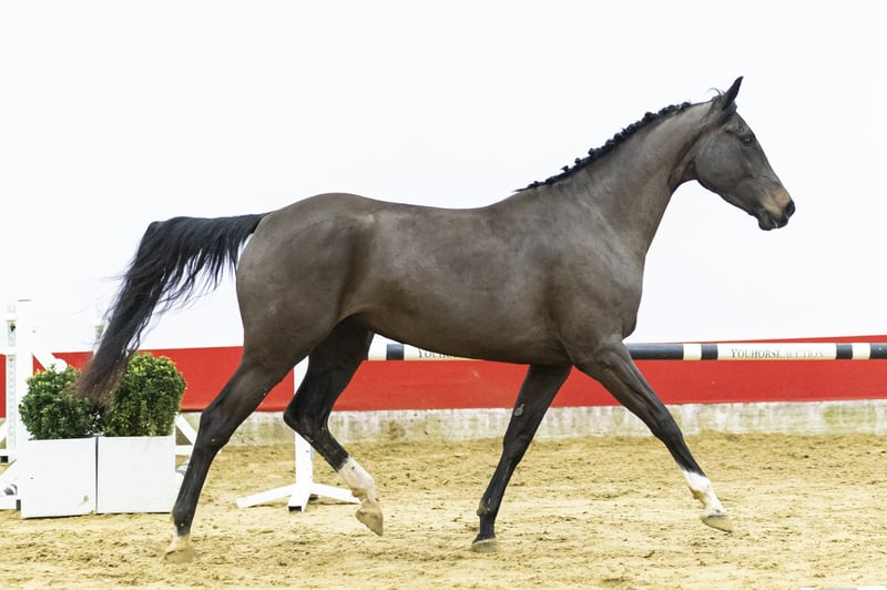 An imposing horse with presence. If you are looking for push-off and carefulness, this is an interesting option. Nicely uphill built and athletic in appearance. She jumps with scope, shows carefulness and a strong front-end technique. Her canter is big and balanced, with scope and rhythm.