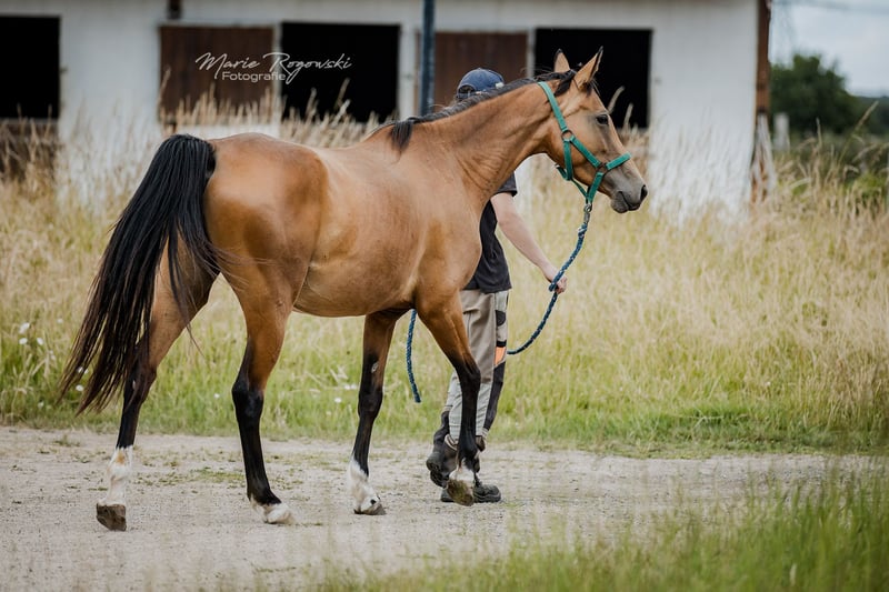 Stute | Zangersheide | Buckskin | geb. 2020 | aktuell 157 cm BUTTERFLY Z ist eine auffällige, sportlich gebaute Stute in seltener Buckskin-Farbe mit exzellentem Bewegungspotenzial. Ihre federnden, taktsicheren Grundgangarten lassen auf eine Zukunft im gehobenen Reitsport schließen - ob Vielseitigkeit, Dressur oder Springen. Vater Bezant stammt aus leistungsgeprüften internationalen Linien mit Schwerpunkt Spring- und Vielseitigkeitssport. Die Mutter Melisande GF ist selbst sportlich veranlagt, überzeugt mit sehr guter Bewegung und ist bereits als zuverlässige Mutterstute bewährt. Butterfly Z verbindet sportliches Talent mit Sonderfarbe und interessanter Abstammung - ideal für Reiter:innen mit Perspektive oder zur Weiterzucht.