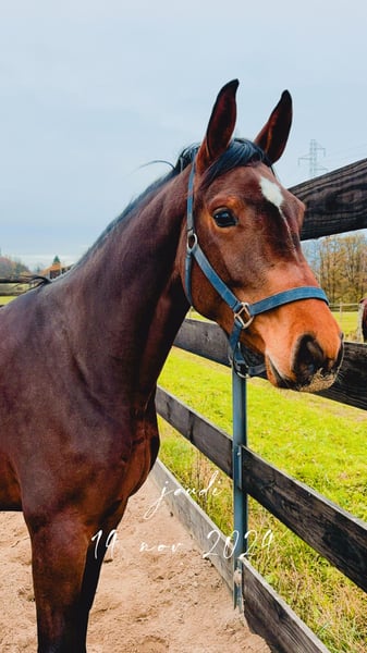 Very easy to ride, this mare has excellent balance and is already ready to navigate a small course at home. She has not yet competed in shows. Suitable for amateur Grand Prix, elite 130, or higher classes with further training. Very close to humans, friendly, with excellent pedigree.