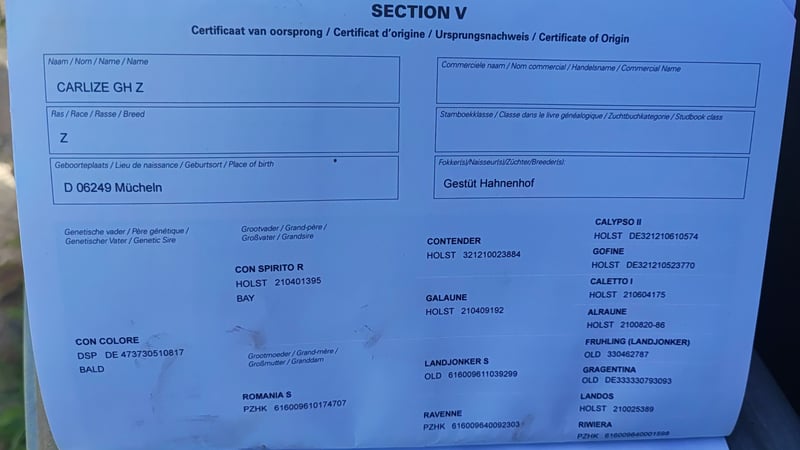 Vendo splendida fattrice Zangersheider, di 4 anni, altezza al garrese 168 cm, dal look particolare. La sua straordinaria calma e tranquillità lasciano intuire molto. È una cavalla da famiglia, molto coccolata e amata. Durante l’addestramento si è sempre comportata in modo gentile e senza problemi. Anche nel rapporto quotidiano è estremamente docile e molto socievole con le persone. È stata già trasportata in trailer, montata in indoor, in arena esterna e in passeggiata. È sempre stata molto brava. Stato attuale della formazione: già montata e messa al passo con il training alla longe. Molto tranquilla, già galoppa e trotta attraverso l’acqua... attraversa anche foglie blu, ecc. Vende solo a persone di grande esperienza e con comprensione del mondo dei cavalli – a causa di progetti di riproduzione e mancanza di tempo. Per eventuale prova di monta verrà richiesto un contributo di 30 €, che verrà rimborsato in caso di acquisto.