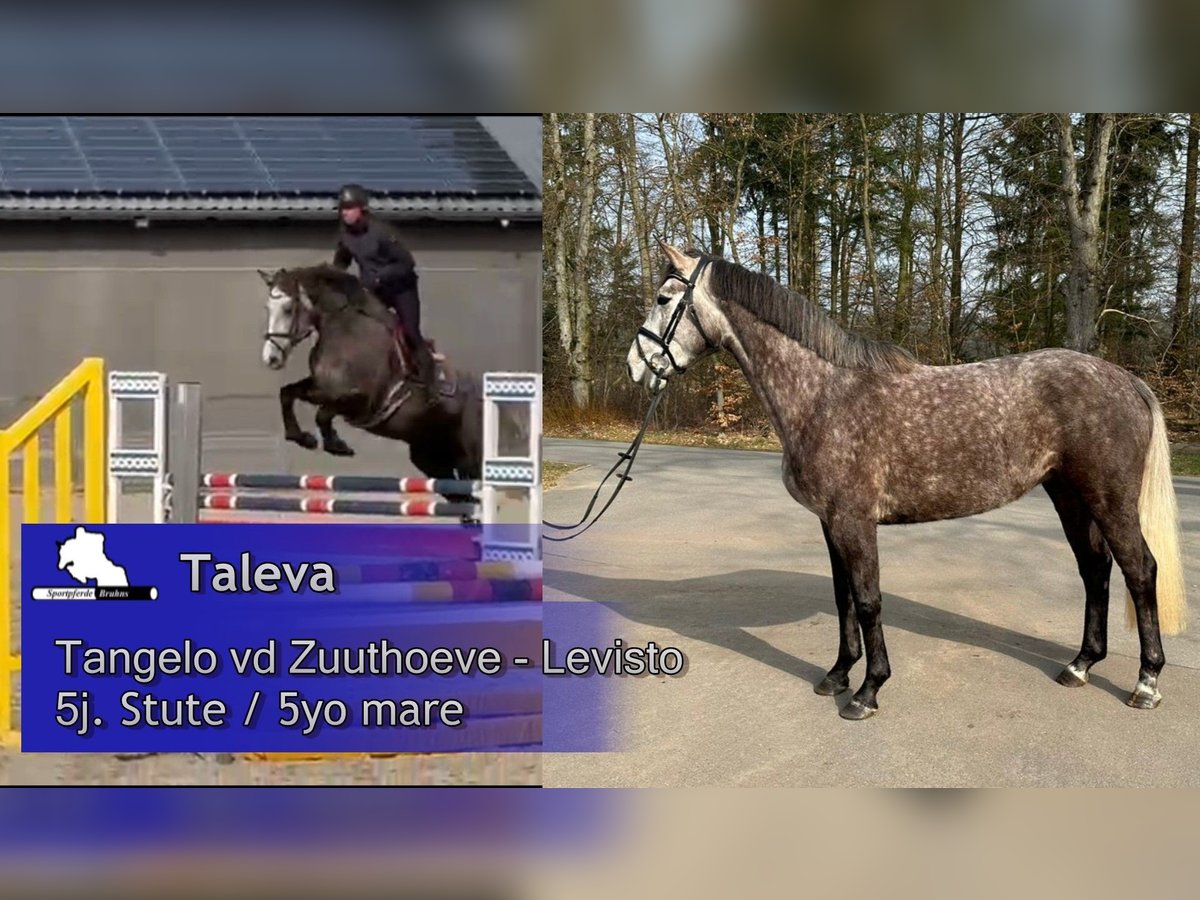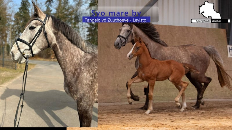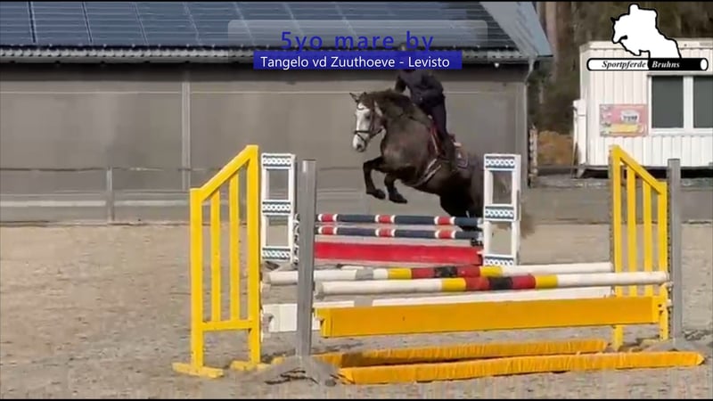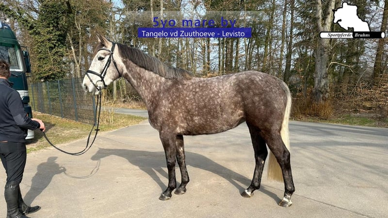 We are offering a charming mare from a highly successful bloodline with an interesting pedigree. The mare is a half-sister to the 1.60 m successful mare "Call me Princess." Her lineage is similarly performance-oriented, with Tangelo vd Zuuthoeve as her sire and Levisto Z as her grandsire. After foaling a foal named Beifuß at the age of four, she has now been backed, lunged under saddle, and is ready for her first competition appearances. Under rider, she is very straightforward, light to the aids, and eager over jumps. Her temperament is very loving, calm, and empathetic. This mare is well-suited for a versatile career in sport, breeding, or leisure riding. She would also make a suitable riding partner for young girls.