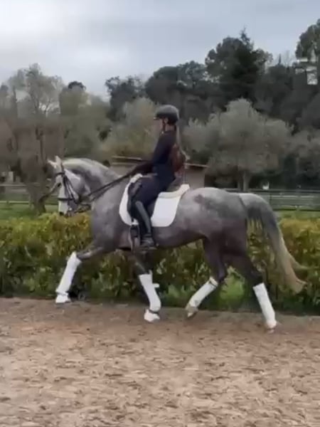 CAL, ZANG-Stute, geboren 2020 und ca. 164 cm groß. Hier haben Sie die vielseitigste 5-jährige auf ehorses! CAL ist eine so positive und talentierte Stute, dass sie einfach Ja zu allem sagt, was Sie tun möchten. Sie zeigt Potenzial in allen Disziplinen; sie springt mit guter Technik und immer mit positiver Einstellung. Im Dressurreiten hat sie eine hervorragende Rittigkeit gezeigt, sie macht gute fliegende Wechsel, alle Seitengänge und hat ein wenig mit der Piaffe gespielt. Sie hat auch mit einem Reiter trainiert, der Vielseitigkeit reitet, und wurde mit einigen Vielseitigkeitssprüngen vorgestellt, die sie liebt. Sie hat auch wirklich gute Bewegungen und einen zuckersüßen Ausdruck, es ist unmöglich, sich nicht in sie zu verlieben. CAL hat 47 Röntgenbilder verfügbar und ist Piro-negativ. CAL befindet sich im Süden Spaniens und wir helfen bei allen Schritten im Kaufprozess. Erfahren Sie mehr über uns unter www.cthorsesales.com Kontakt: info@cthorsesales.com