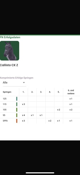 Callisto es un caballo gelding Zangersheide nacido en 2015, de aproximadamente 1,83 m de altura, sired by Cigaret JvH Z x Casco. *Callisto* es un caballo muy amable y tranquilo, que transmite confianza a quien monta. Es muy apto para principiantes y jinetes con miedo. Callisto es calmado y valiente. En doma, por su tamaño, es ligero y cómodo de montar. El entrenamiento en relajación, trabajos en plano, etc., no le representan ningún problema. Es muy bueno en el campo, tanto solo como en grupo, incluso en entornos desconocidos. Sin duda, un caballo soñado. En el manejo, es sencillo y cariñoso. Conoce el remolque y el camión. Callisto es un caballo muy honesto, con un carácter excelente. Ha sido vacunado regularmente y goza de buena salud. El informe de la revisión veterinaria de 2022 está disponible y sin hallazgos. Lamentablemente, no es adecuado para salto, ya que se pone muy fuerte al saltar y necesita un jinete seguro a su lado en esta disciplina. Contacto y disponibilidad: Para consultas, por favor, llamar al +49 151 6430 3004. Estoy a su disposición para cualquier interés o información adicional. ¡No dude en comprobar por usted mismo lo maravilloso que es este caballo! Para una prueba de salto, cobro 35 €, que se deducirá en caso de compra.