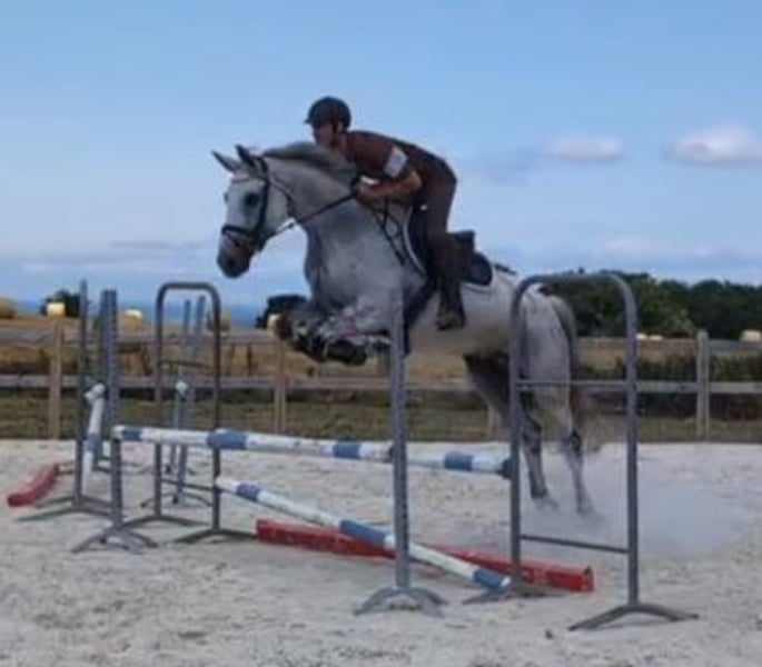 Castel de St Jean Z 11-year-old gray gelding, 1.68 m, with a good pedigree. Very gentle and respectful on foot and under saddle. Suitable for a professional or an experienced amateur in show jumping, with solid scope (minimum 140 cm). Shows a bit of character over the fences. Born at home, but does not get along with the current rider. Has performed very well in 5- and 6-year-old show jumping classics. Never competed in dressage, but has magnificent gaits that would allow an amateur level 1 rider, even with a young or intermediate rider. Videos available online by searching his name. ORIGINS: - Sire: Castelino van de Helle, Holsteiner (by Cassini I) - Dam: Kabyl des Cresles, Selle Français (by Concorde x Verdi), line of Diamant de Semilly. Located near Dijon. For more information, please contact by phone.