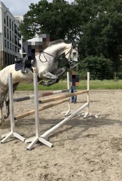Due to lack of time, we are selling our beloved horse, Cleverboy HC Z (affectionately called Idefix). Idefix is a 15-year-old Zangersheider grey gelding with Holsteiner bloodlines. Standing at 174 cm, with a strong neck and expressive dark eyes, he has an impressive presence. In his early years, Idefix competed internationally in show jumping. Due to stress-related issues, he was later withdrawn from competition and has since been ridden only for leisure (dressage and jumping). Therefore, we are looking for a new owner, ideally with experience in jumping, who will continue to enjoy him as a leisure horse. He shows a good approach to jumps but needs an active rider and benefits from the security and calmness of a confident partner. Idefix is affectionate, playful, and clever. He enjoys hacking out and remains completely relaxed in the countryside—even when faced with street noise, cars, or cyclists. He occasionally tests his rider at the riding arena, so he is not suitable for beginners. Since he was backed at age 9, he still has a bit of stallion nature. He has never been part of a large herd but is familiar with sharing a paddock with other horses, having only been turned out with mares so far. Groundwork shows that Idefix is eager to learn and works diligently. We are seeking a patient and empathetic person who will build a trusting relationship with him. Someone who does not tolerate forceful "rushing through" in dressage but instead rides calmly, confidently, and consistently. Over the past 18 months, Idefix has been deliberately kept light due to a gastric issue and has been ridden very little. He is now fully recovered and should be gradually reintroduced to active work. Documentation of his treatment is available. Idefix is regularly vaccinated, dewormed, and receives physiotherapy. Accessories (such as a new dressage saddle, jumping saddle, bridle, etc.) can be purchased at an additional cost. PRICE PRIORITY! PLEASE, NO PLACEHOLDER OFFERS! Additional photos and videos are available and can be sent upon request. If interested or for further information, please do not hesitate to contact me.