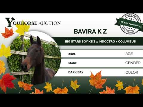 The four-year-old Bavira K Z is light-footed and has a lot of quality, just the way we like them. An interesting mare with a good way of jumping. Sire Big Stars Boy KB Z is an eight-year-old Zangersheide-approved stallion by Olympic champion Big Star out of the half-sister to the 1.60m Grand Prix horses Aristo Z and Sea Coast Pebbles Z. Dam Zavira V.D.W. (Indoctro) competed up to 1.30m level and already gave three international showjumping horses: Deister V.D.W. (1.35m level), Forever V.D.W. (1.35m level) and Blue Ivy Z (1.30m level). Granddam Ilandria (Columbus x Nimmerdor) also gave Riante (1.45m level) and Sandria V.D.W. (1.30m level). https://youhorse.auction/en/auction/Bavira-K-Z-BIG-STRAS-BOY-KB-Z-x-INDOCTRO