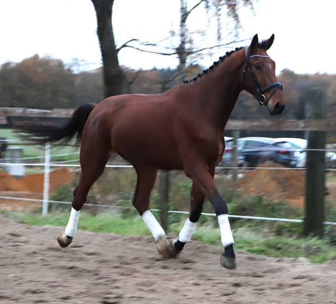 Zangersheider Gelding – An Impressive Show Jumping Prospect For sale is an elegant bay Zangersheider gelding, born in 2021. Standing at 17.6 hh, he combines size, elegance, and a strong willingness to perform. This talented show jumper impresses with his excellent pedigree, remarkable jumping ability, and pleasant temperament. Perfect for ambitious riders seeking a promising young talent. If interested, I am happy to provide more information and arrange a viewing. Denver has been X-rayed and is healthy, with no prior illnesses or restrictions. For further details, please contact me at 0172 734811.